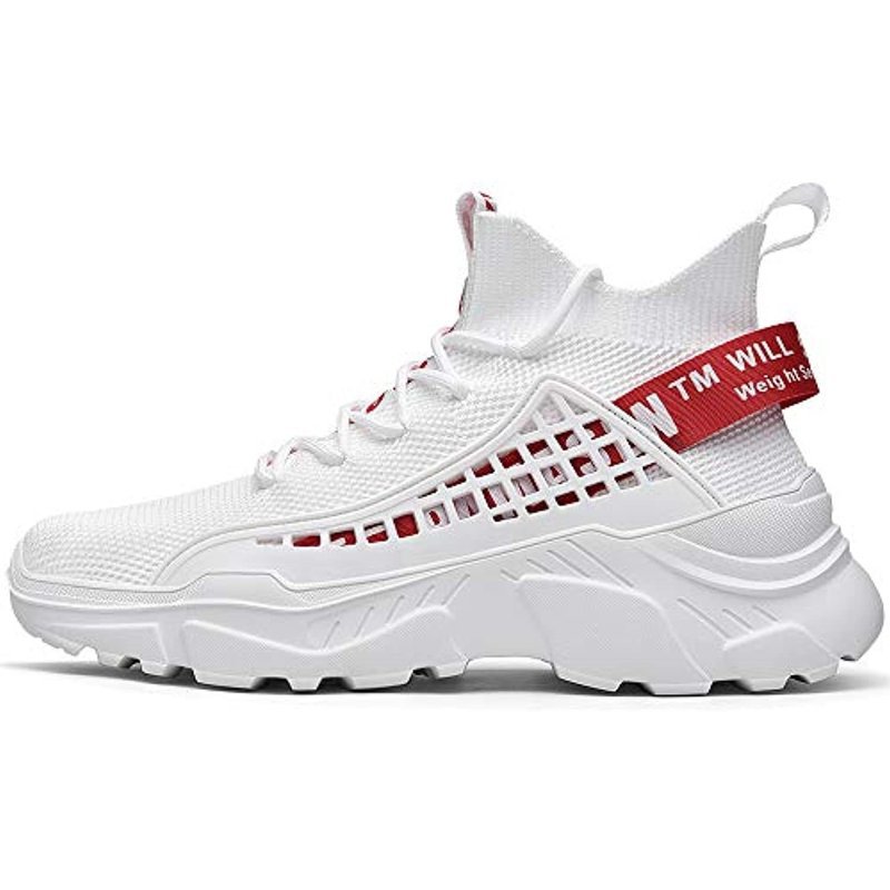 Mens Athletic Running Walking Shoes Non Slip Fashion Contrast Colors Retro Sneakers White Red